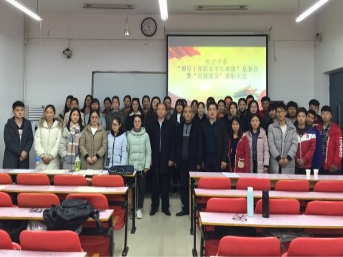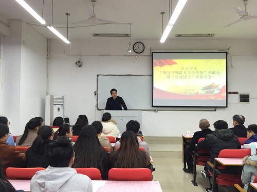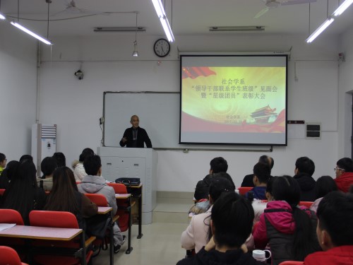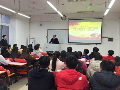 为推动我系优良学风、班风建设,积极响应我校关于加强领导干部联系学生班级制度的实施意见。12月20日,我系171301班于第二教学楼203教室开展“领导干部联系学生班级” 见面会暨“星级团员”表彰大会,我校武装部部长麻立彰作为指导老师莅临现场,我系党总支书记冯益广出席会议,会议由团总支副书记时留杰主持。